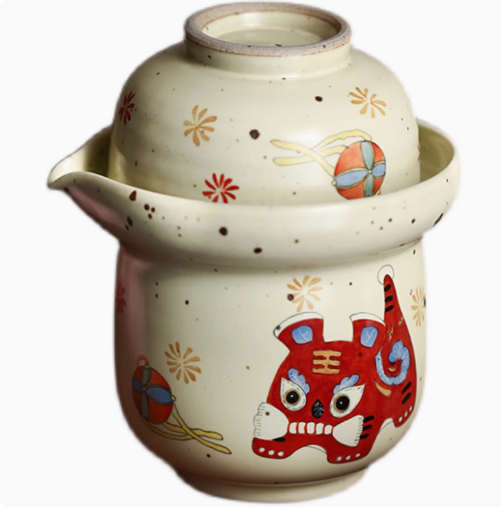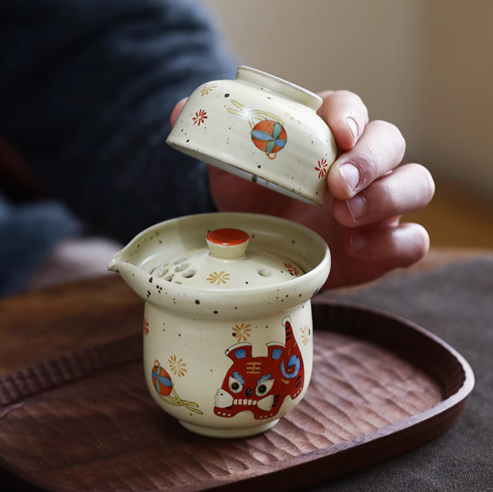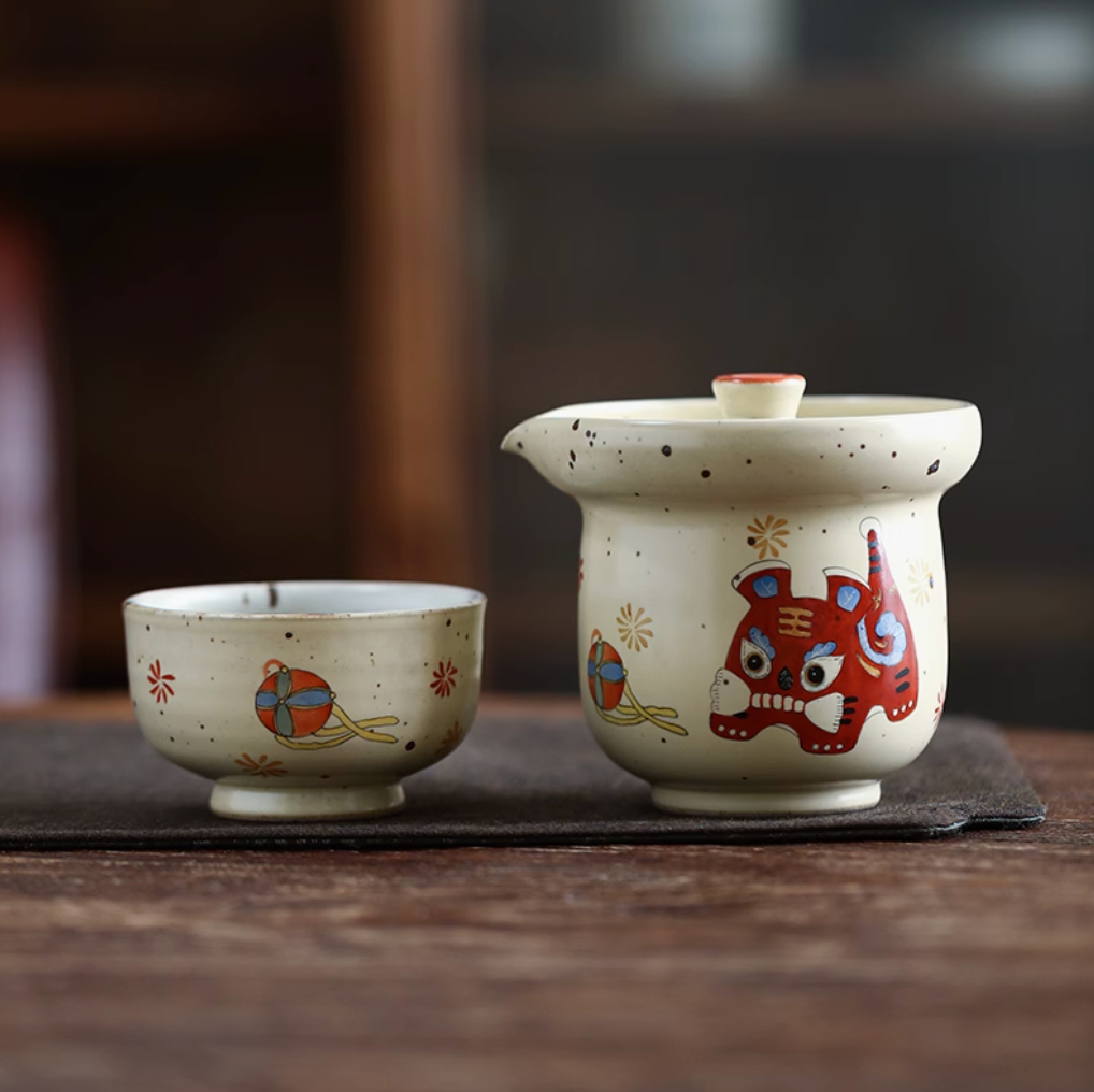 “Lucky Tiger“ Kung Fu Travel Tea Set Hand-painted Jingdezhen Teapot