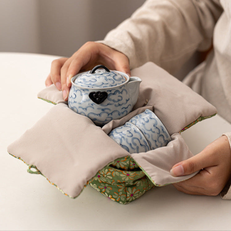 Ultimate Portability: Your complete tea ceremony travels with you. The set includes a padded zip收纳包 (zippered storage pouch) that securely holds the teapot and two cups, protecting them from damage and making them easy to pack in your luggage or backpack.